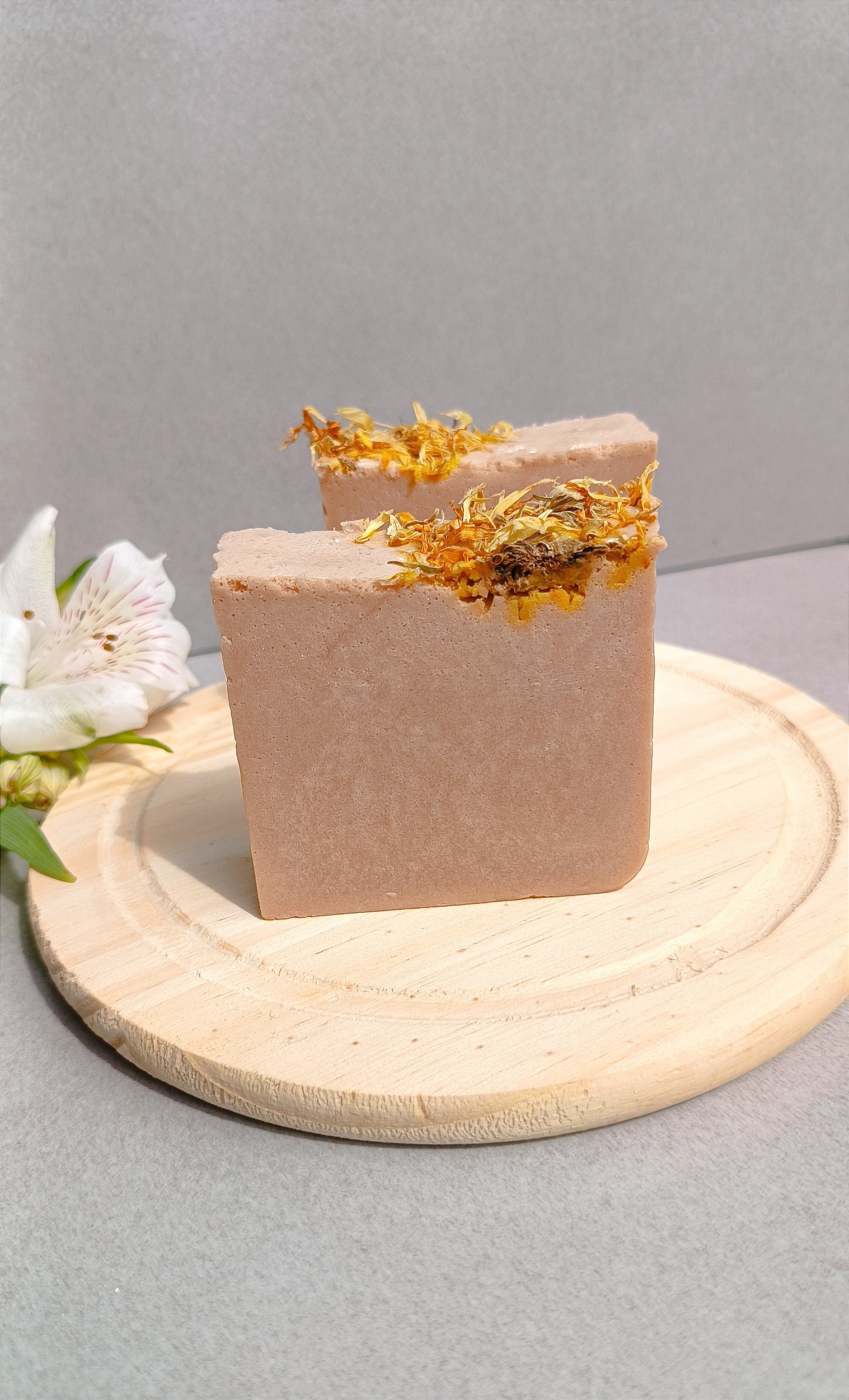 Composição: Base Glicerinada, extrato, essência e calêndula desidratada.